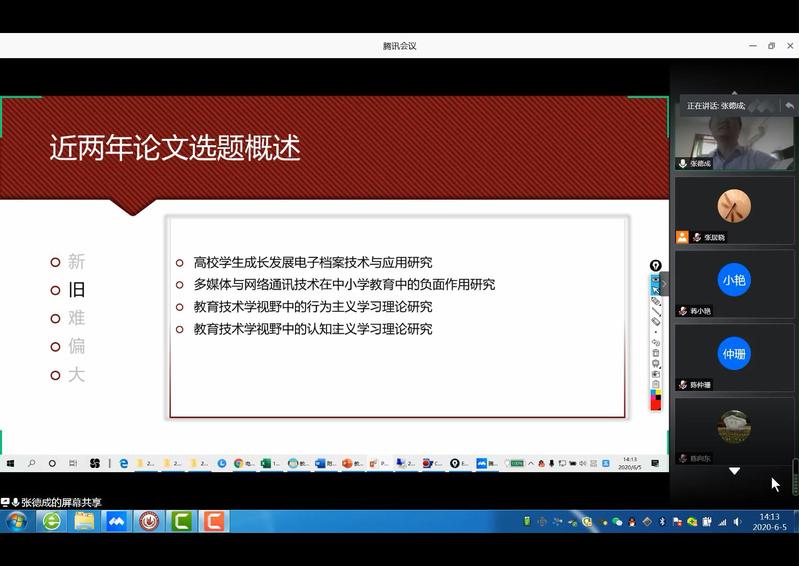 2020年6月5日下午,球友会邀请盐城师范公司张德成副教授给教育技术学专业师生开展“教育技术的毕业论文选题遴选”专题讲座。讲座由公司教学副经理张居晓副教授主持,2017级教育技术学专业毕业论文指导老师及员工代表聆听了讲座。
