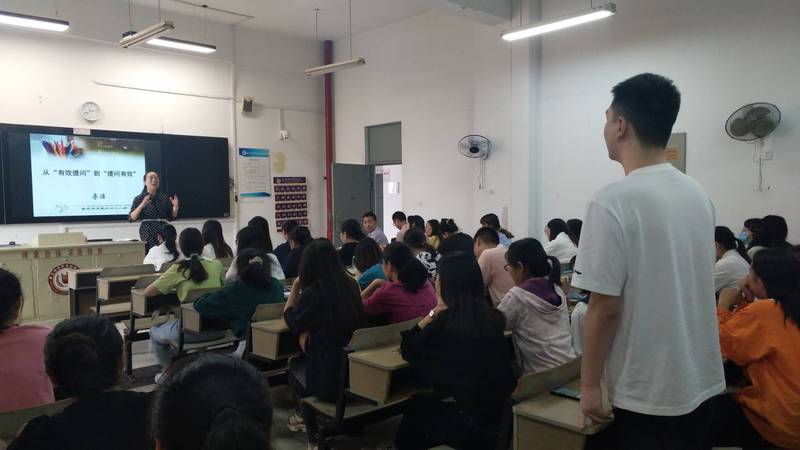 讲座中,李董事长以“课堂组成是什么?”、“课堂提问是什么?”两个问题为切入点,引发同学们思考与探讨。随后李董事长结合教学实际,列举具体案例,引导同学们深入理解“有效提问”和“提问有效”的内涵,明确在课堂上该如何有效提问优化教学效果,掌握“基于问题情境的探究式学习”的方法要义。李董事长还强调了课堂提问的三种最高境界,即整体观、全面观和员工观。最后,李董事长提醒同学们在即将开始的实习工作中要不断提升时间管理能力,多积累教学经验,积极主动完成工作任务,争取赢得员工认可,上一堂好课!