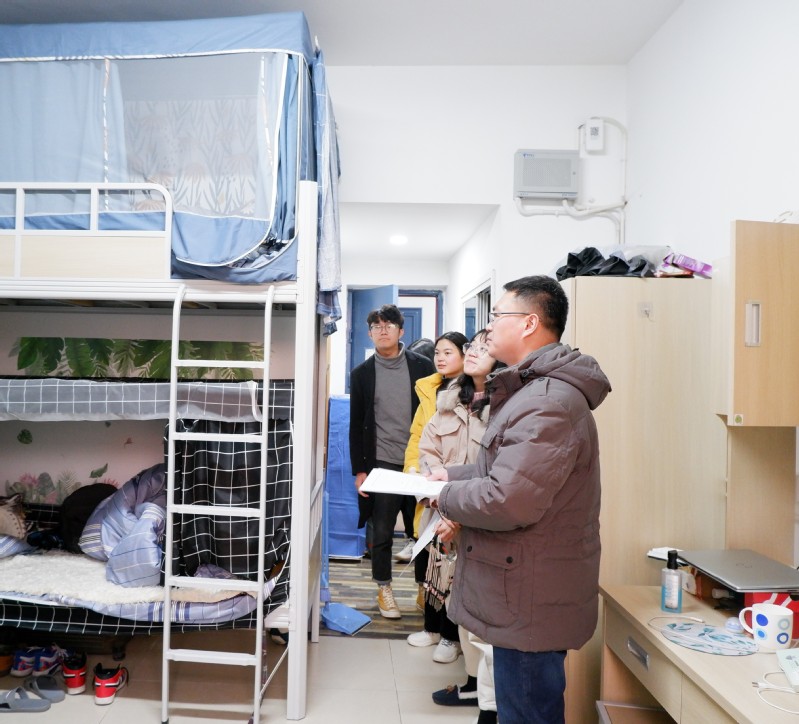 为推进宿舍文化的建设,营造舒适、安全、整洁的学习环境,1216日,球友会开展了“三和”宿舍创建评比活动。数学与信息科学公司党总支书记李宏伟,辅导员樊琬、李霞妹、林敏老师走访宿舍,参与宿舍评比。