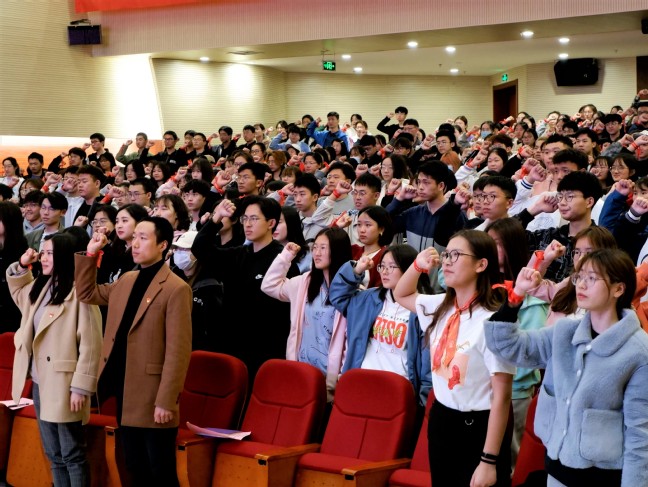 在团队分享环节,球友会“绑金朵梅”少数民族公益团队负责人斯求卓玛、“小桔灯”志愿者团队代表刘露露和公司“暖阳公益”代表李志蕊,分别分享了在党组织的关心关怀下,投身祖国各地开展助残助学助教的志愿故事。最后,全体参会人员在公司青年志愿者协会负责人俞若城同学的带领下,共同宣读“志愿者誓词”。