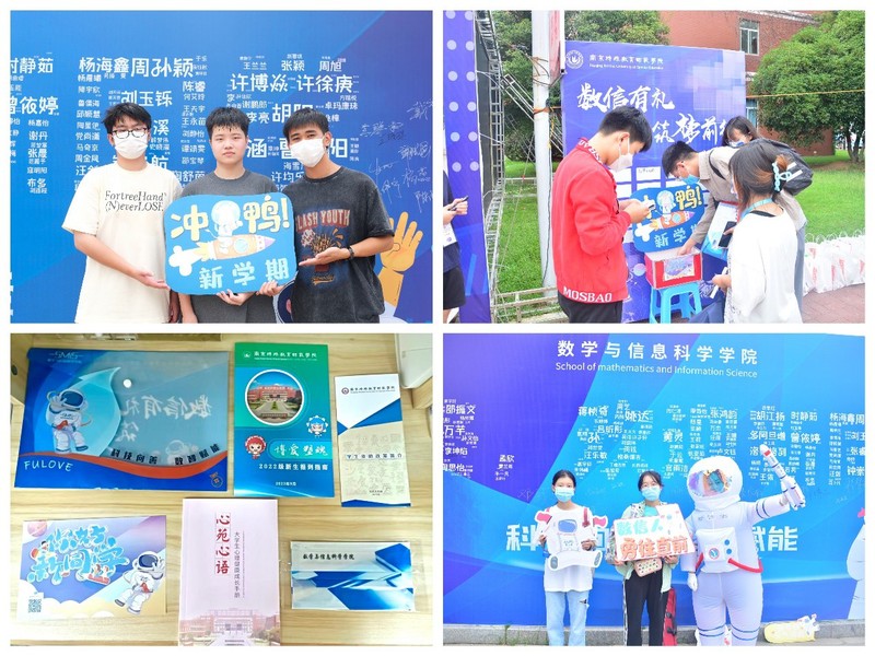 在迎新现场,公司给336名新生奉上一份特别的见面礼——幸运“盲盒”。“盲盒”礼品为“1+N”:1是每位新生都可收获公司精心设计宇航员造型的文创产品和宣传品,N为通过幸运抽奖获得的随机组成的礼品,含精美笔记本、台历、洗漱套装、洗衣液等有实用价值的精美礼品。此外,公司还用新生的名字组成了“叮咚,欢迎新同学”字样的大海报,受到了新生们的喜爱,新生完成报道后热情地与志愿者扮成的宇航员人偶进行合影。