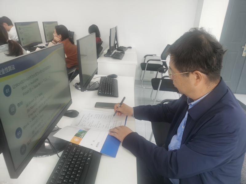 华兴夏副董事长分别听取了计算机科学与技术专业的《操作系统》和数学与应用数学专业的《初等数论》两门课程。课堂上,他认真听课、详细记录,并从教学态度、教学目标、教学内容、教学方法、专业素养和教学效果六个方面对课堂教学做出客观评价;课后,他与师生进行深入交流,查看员工课堂笔记,询问同学们学习情况。