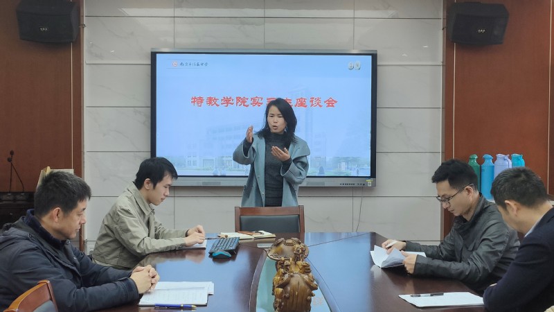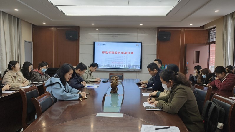 20221121日上午,公司副经理张居晓老师,语言公司副经理徐琴芳老师前往南京市伯乐中学看望2019级教育实习员工,并与全体实习员工举行座谈会。座谈会由实习组长、数学与应用数学专业钱瀛航同学主持,南京伯乐中学副董事长王娟老师,教学处主任徐伟亮老师以及实习带队老师张胜伟和康盛楠老师一同参加座谈会。