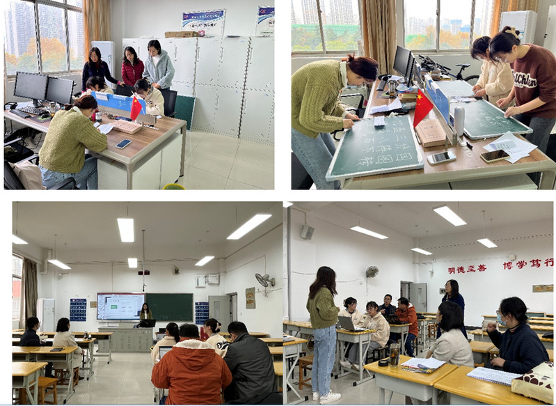 当日上午十时,模拟比赛正式开始,三位选手以随机抽签的方式确定比赛题目,并按照钢笔字、粉笔字、模拟授课和口语表达的顺序依次完成比赛项目。评委老师们分别对比赛选手们提出了有关教学过程、课件制作、语言逻辑等方面的修改建议,并就江苏省师范生基本功大赛的相关流程和比赛技巧,进行了针对性指导。