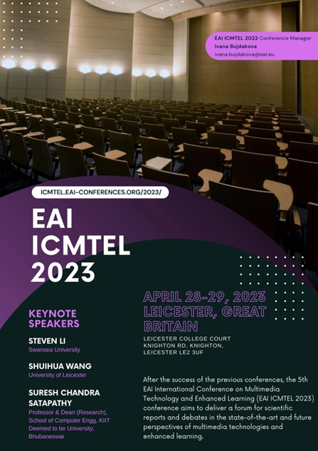 由公司和英国莱斯特大学合作举办的第五届EAI多媒体技术与增强学习国际会议(EAI ICMTEL 2023 - 5th EAI International Conference on Multimedia Technology and Enhanced Learning)于北京时间4月28日下午16:00顺利开幕。