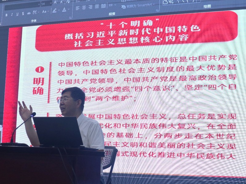 华兴夏副董事长立足于自身丰厚的知识和理论素养,以马克思和恩格斯的伟大友谊和革命历程为引,展开本次党课的教学。他围绕马克思主义理论创新的路径、理论创新的成果、习近平新时代中国特色社会主义思想的立场观点方法三个方面进行了重要阐述。他指出:我们党勇于进行理论探索和创新,以全新的视野深化对共产党执政规律、社会主义建设规律、人类社会发展规律的认识,取得重大理论创新成果,集中体现在习近平新时代中国特色社会主义思想里,其中“十个明确”、“十四个坚持”、“十三个方面成就”是其核心 内容。在讲到习近平新时代中国特色社会主义思想的立场观点和方法时,他强调,把握运用好习近平新时代中国特色社会主义思想的世界观和方法论,就必须坚持人民至上;坚持自信自立;坚持守正创新;坚持问题导向;坚持系统观念;坚持胸怀天下。