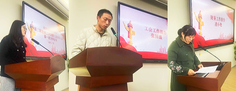 会上,全体教职工举手表决通过公司工作报告、工会工作报告、财务工作报告,并选举产生了新一届公司工会委员会及主席。