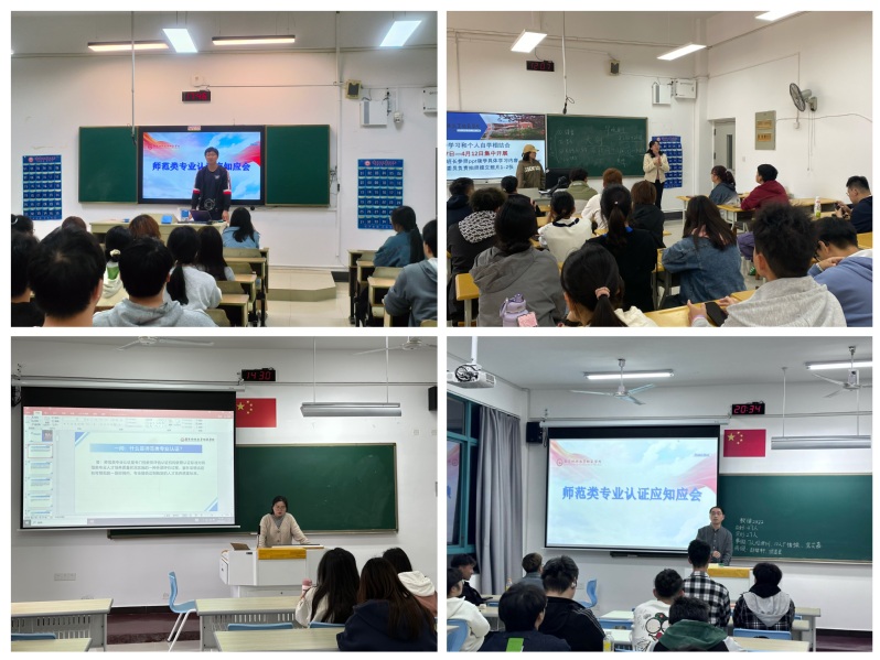 各班班主任从师范类专业认证基本知识、师范类专业认证标准以及深度访谈参考提纲三个方面向同学们详细介绍师范类专业认证相关知识,明确师范类专业认证知识测试的内容、形式、安排与注意事项,鼓励同学们积极参与到师范类专业认证工作中。