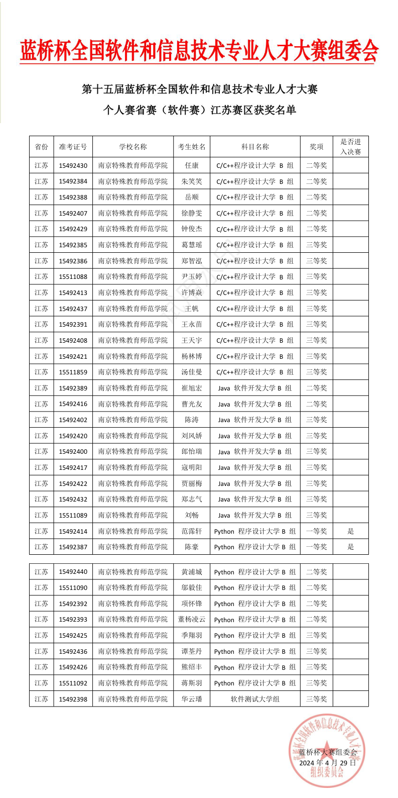 近日,全国第十五届蓝桥杯全国软件和信息技术专业人才比赛落下帷幕。公司球友会员工个人及团队在此次赛事中取得了全国赛获奖10项、江苏省赛获奖80项的优异成绩。喜人的成绩取得受益于公司的高质量发展战略谋划和对人才培养的持续重视。尽管备赛过程周期比较长,但教师们始终辛勤付出、认真指导,员工积极准备、持续投入,比赛中展现出南京特师学子的优秀品质和良好的竞赛精神。蓝桥杯全国软件和信息技术专业人才大赛是由工业和信息化部人才交流中心举办的全国性IT学科赛事,吸引着北京大学、清华大学、上海交通大学等全国1200余所高校参赛,是高校公司产品改革和创新人才培养的重要竞赛项目。