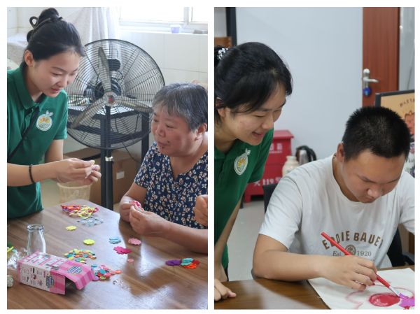 7月3日,在阳澄湖周边三家残疾人服务组织里,志愿者与机构学员们纷纷投入到纽扣花和帆布包的制作中。过程中,残疾人朋友们虽动作略显艰难,但在志愿者的协助下,他们创作出了属于自己的作品。