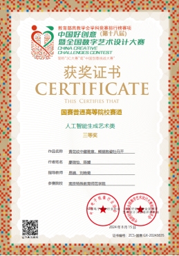 在这两大赛事中,数信公司的学子们充分展现了他们对艺术的热爱与对技术的追求,特别是在人工智能生成艺术类(AIGC)及国潮非遗设计类等前沿与创新赛道上,他们凭借独特的创意和精湛的技能,赢得了评委们的高度认可。