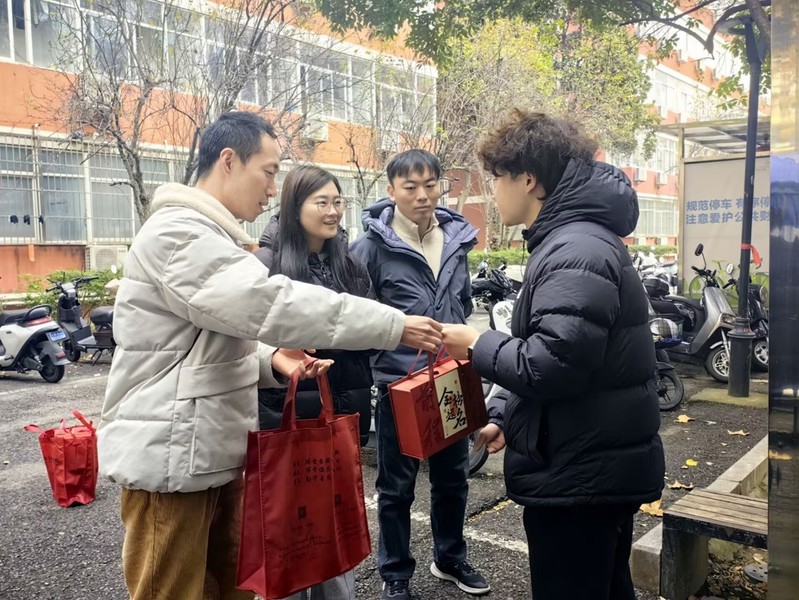 2025届研究生招生考试在即,考研学子也在紧锣密鼓做最后冲刺。为坚定考研学子信心,表达公司关怀,数学与信息科学公司党总支副书记丁雯、毕业班辅导员张国盛、22级辅导员丁力等走访宿舍、学习场所为考研学子们发放“暖心考研大礼包”,并送上温暖的祝福和亲切的鼓励。